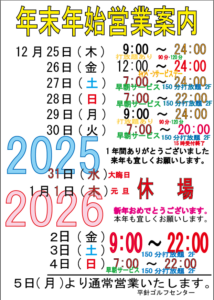 年末年始 営業 25-26